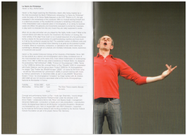 Shortened pages are placed carefully in between full bleed images, so that the images are divided in two parts and become almost scenic when pages are turned.